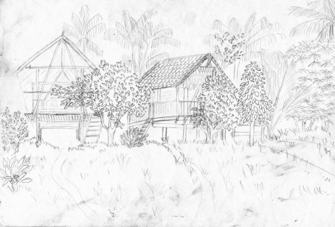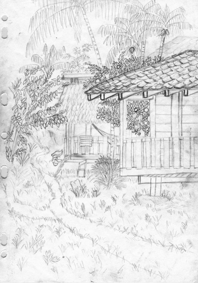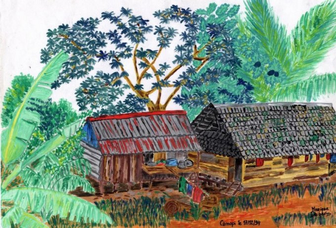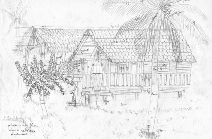 Gravures et dessins réalisés à Camopi lors de l’expédition en kayak pliant d’expédition ’’Sur les traces de Coudreau’’.