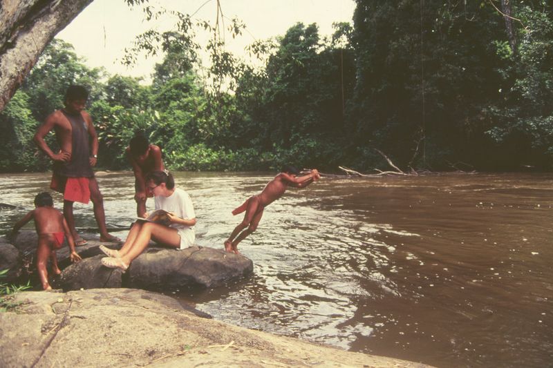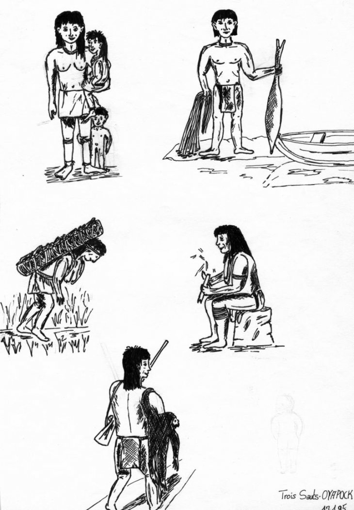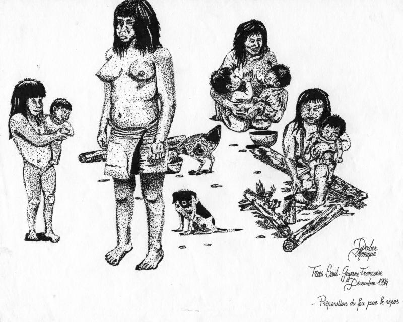 Quelques scènes de la vie des Oyampis croquées sur le vif par Monique à Trois Sauts.