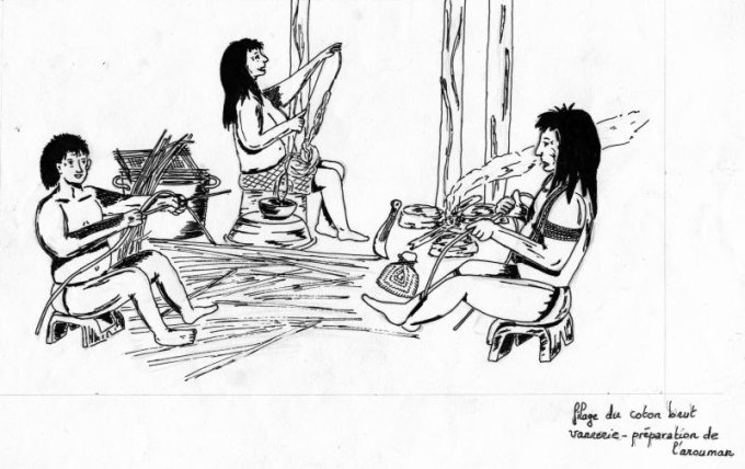 Filage du coton, préparation de l’arouman pour la vannerie.