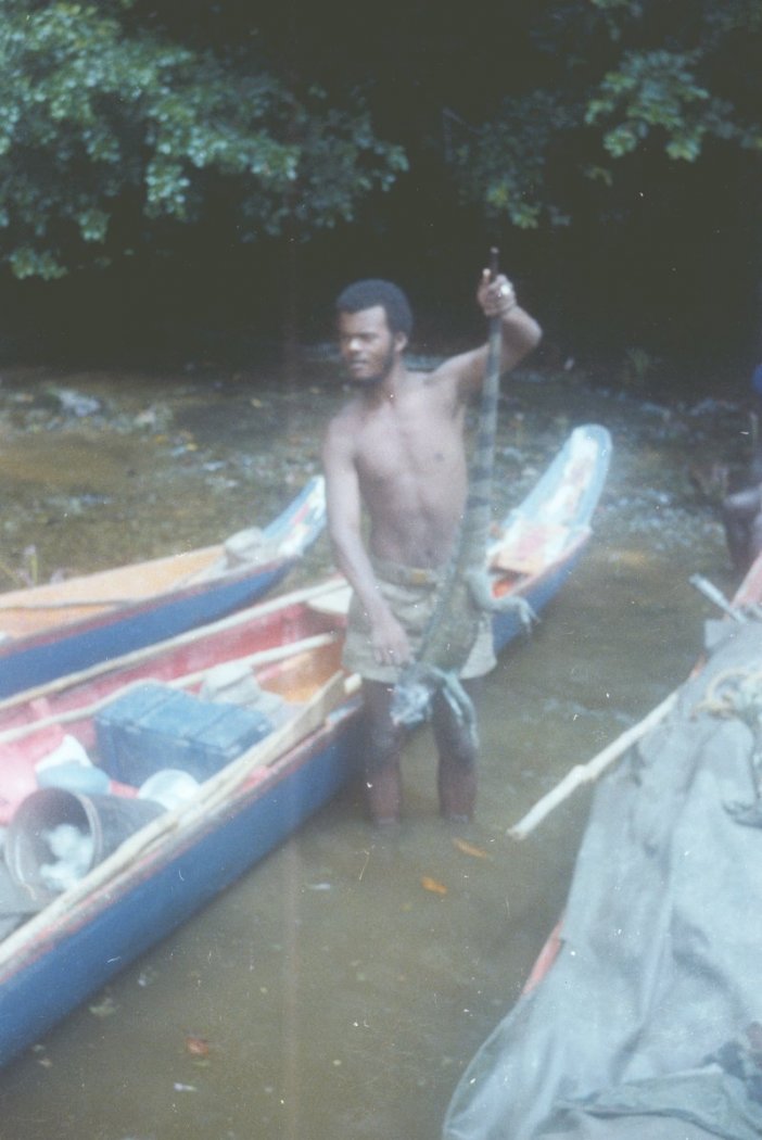 À cette époque, je ne buvais aucune goutte d’alcool, ce qui faillit causer un incident ! La participation aux rites est obligatoire et le fait de ne pas y participer peut porter malheur à l’expédition et surtout provoquer l’animosité des piroguiers. Le chef d’expédition connaissant mon refus de toute boisson alcoolisée, m’a donc prié discrètement de faire semblant de boire le rhum lors de la cérémonie et au moins d’y tremper les lèvres pour ne pas nous mettre les esprits du fleuve à dos...