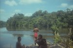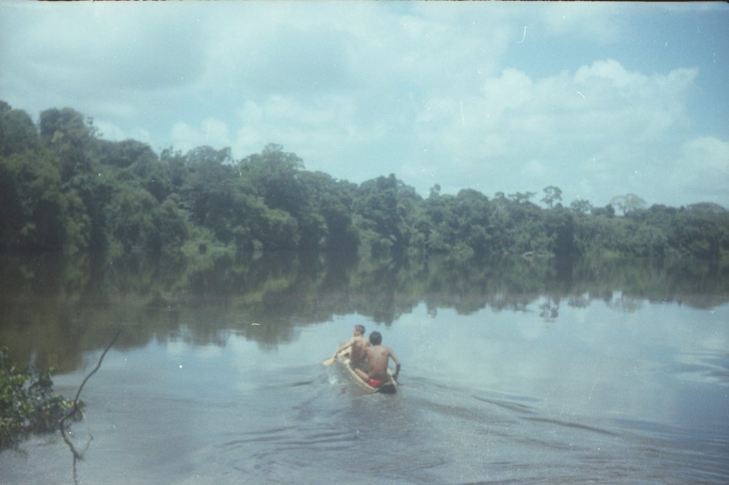 Le fleuve est plein d’îles et de chenaux et la notion de frontière est floue. Nous ne savons jamais si nous sommes au Surinam ou en France. Les piroguiers Bonis sont polygames pour certains et font de nombreux arrêts aux abattis pour ravitailler leurs femmes en diverses denrées de première nécessité.