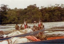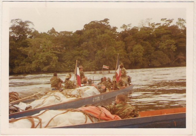 Nous devons remonter le Maroni et nettoyer et approvisionner en carburant certaines DZ (zone de posé pour les hélicos) et remonter la crique Coulé-coulé jusqu’au point de jonction de la frontière du Brésil, du Surinam et de la Guyane.
