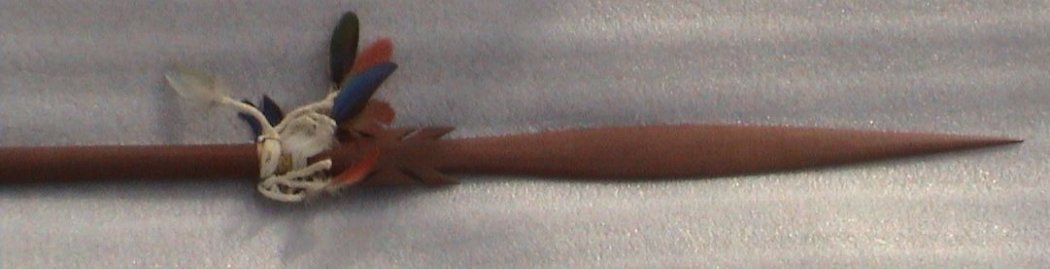 Elle est réalisée dans le même bois que l’arc. C’est une arme utilisée par les Indiens lors des conflits tribaux et comme moyen de défense quand ils se rendaient dans les abattis. Elle servait en outre à achever le gros gibier.
