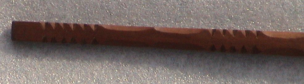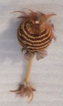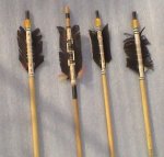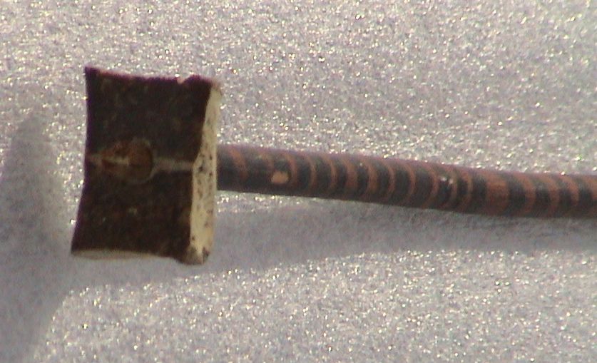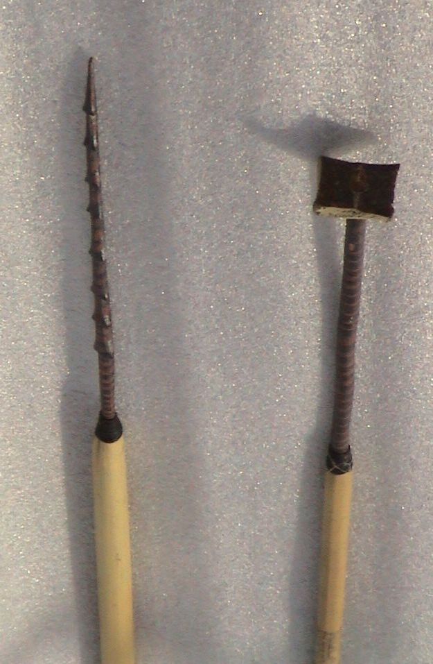 C’est la flèche assommoir. On l’utilise pour le petit gibier : tourterelles, petits oiseaux, lézards… Peu dangereuse, c’est par excellent la flèche de jeu des enfants. La « pointe » est réalisée avec :