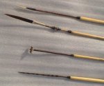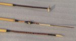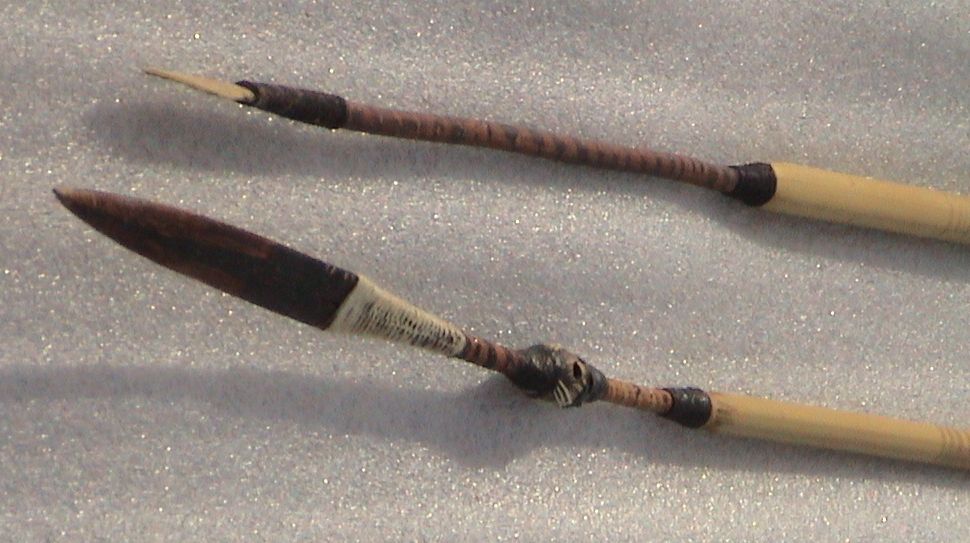 C’est un éclat de bambou tranchant serti sur une baguette de bois fibreux, elle-même insérée profondément dans le roseau à l’aide de résines palakta ou mani. Cette flèche est utilisée pour le gros gibier : maïpouri, cochon-bois, singe…