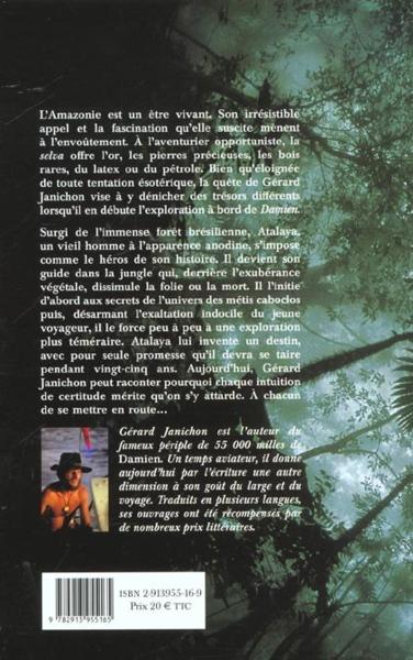 Surgi de l’immense forêt brésilienne, Atalaya, un vieil homme à l’apparence anodine, s’impose comme le héros de son histoire. Il devient son guide dans la jungle qui, derrière l’exubérance végétale, dissimule la folie ou la mort. Il l’initie d’abord aux secrets de l’univers des métis caboclos puis, désarmant l’exaltation indocile du jeune voyageur, il le fore peu à peu à une exploration plus téméraire. Atalaya lui invente un destin, avec pour seule promesse qu’il devra se taire pendant 25 ans. Aujourd’hui, Gérard Janichon peut raconter pourquoi chaque intuition de certitude mérite qu’on s’y attarde. À chacun de se mettre en route... "
